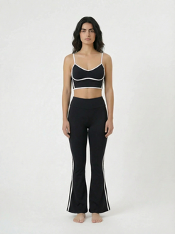 Cinturilla alta sin elástico, se adapta suave al cuerpo sin presionar con botas acampanadas y detalles resaltados cómodo y fresco — diseñado para actividades de bajo impacto. Confeccionado en tejido suave y altamente respirable.